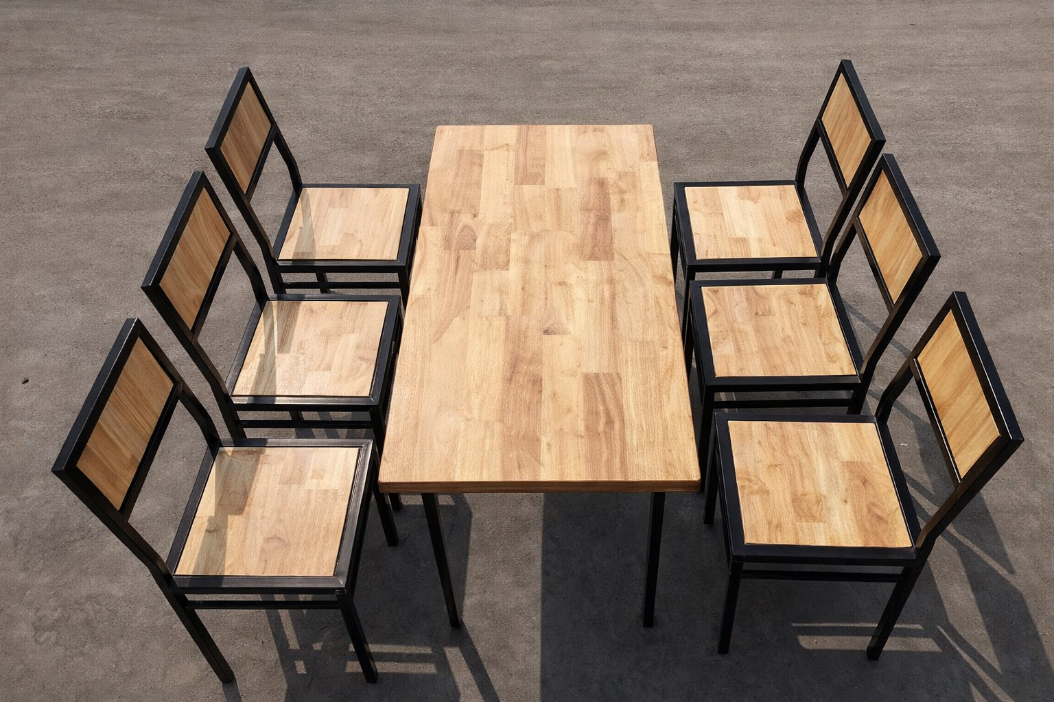 +Mặt và đệm ghế bằng cao su hoặc gỗ thông tự nhiên ghép thanh tùy khách chọn