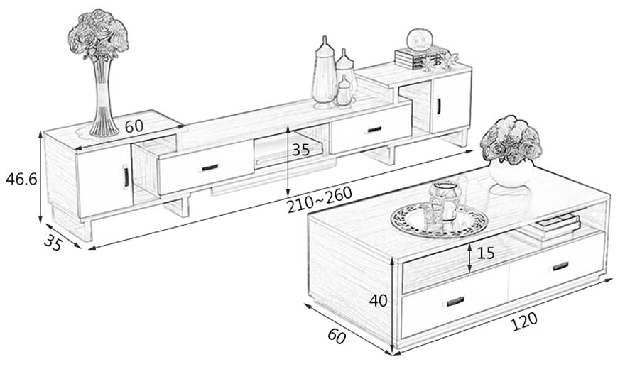Kiểu dáng: Bàn trà sofa hình chữ nhật, thiết kế hiện đại