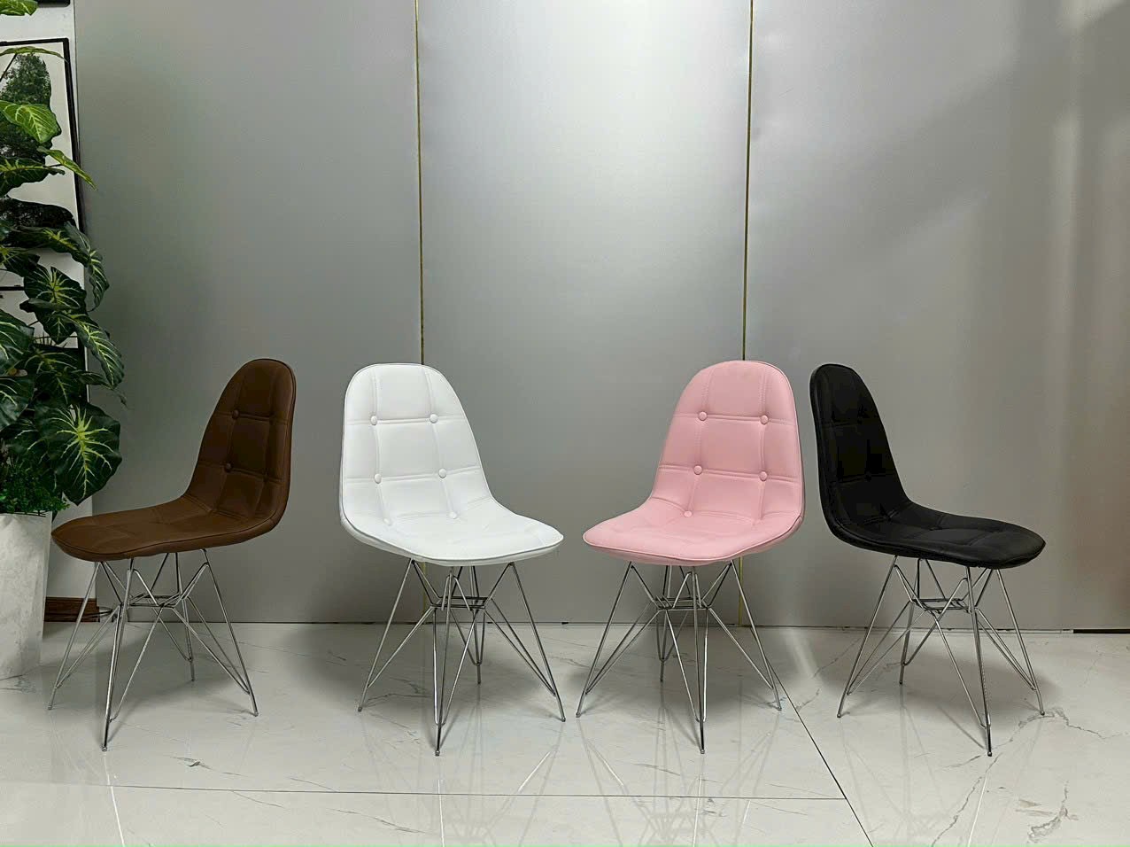Gửi đánh giá của bạnGhế cafe Eames đệm da bọc cúc chân mạ giá rẻ GCF04M