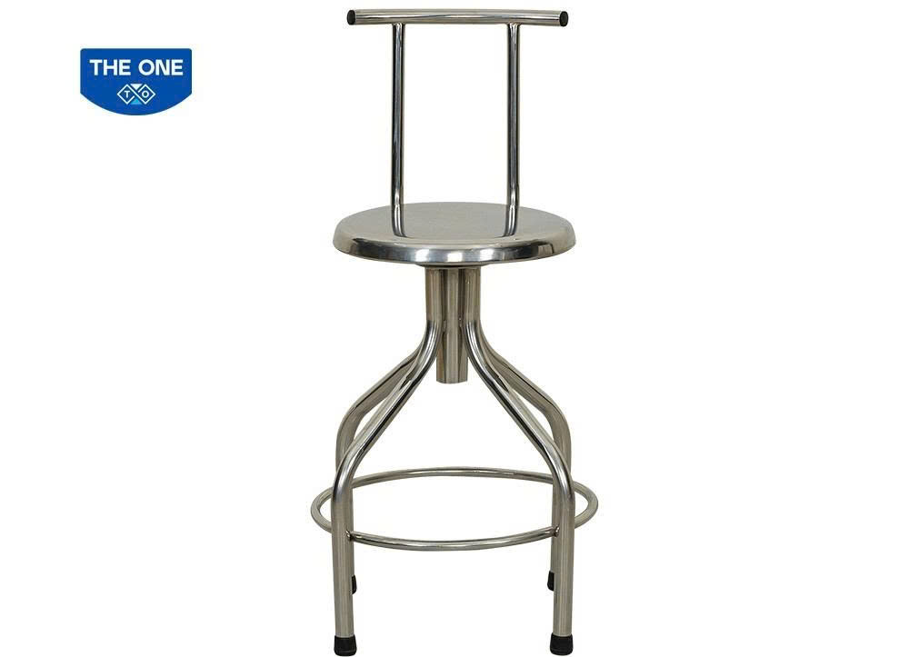 Ghế ngồi bằng khung Inox cao cấp có thể xoay tròn và điều chỉnh độ cao.Chân ghế sử dụng đế nhựa chịu lực, giúp hạn chế trầy xước nền nhà.