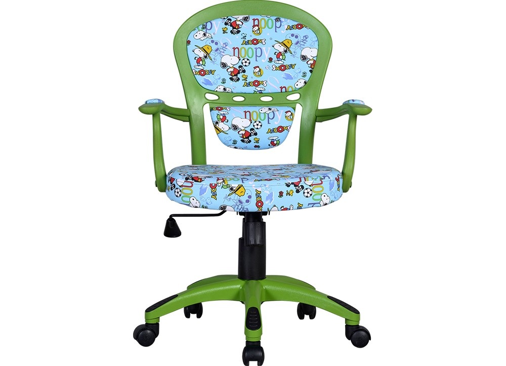 Ghế được thiết kế với chân tay vững chắc, tựa ghế làm bằng nhựa màu xanh tươi sáng, tạo cảm giác thân thiện và gần gũi cho trẻ em. Đặc biệt, phần đệm và tựa ghế được bọc bằng vải có in hình trang trí sinh động, giúp kích thích sự sáng tạo và hứng thú của trẻ khi ngồi học hoặc chơi đùa.