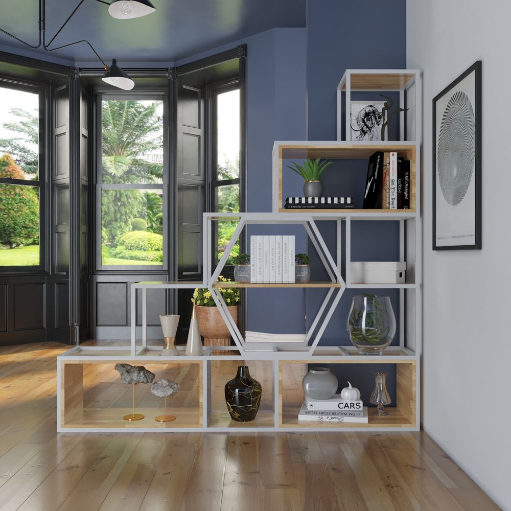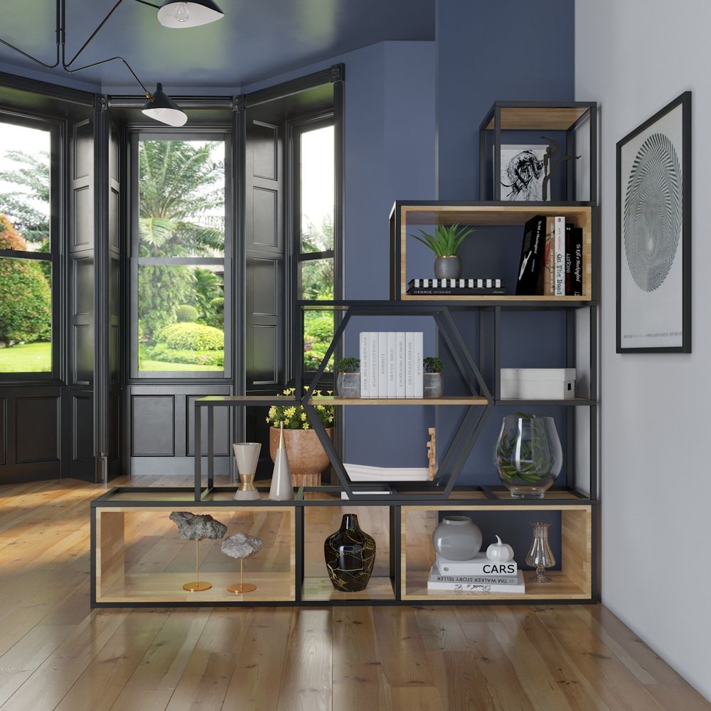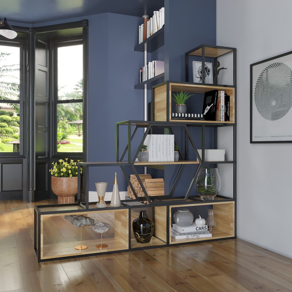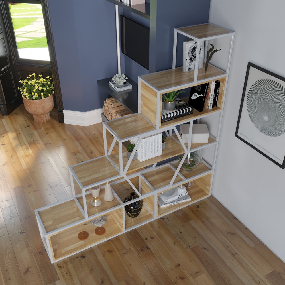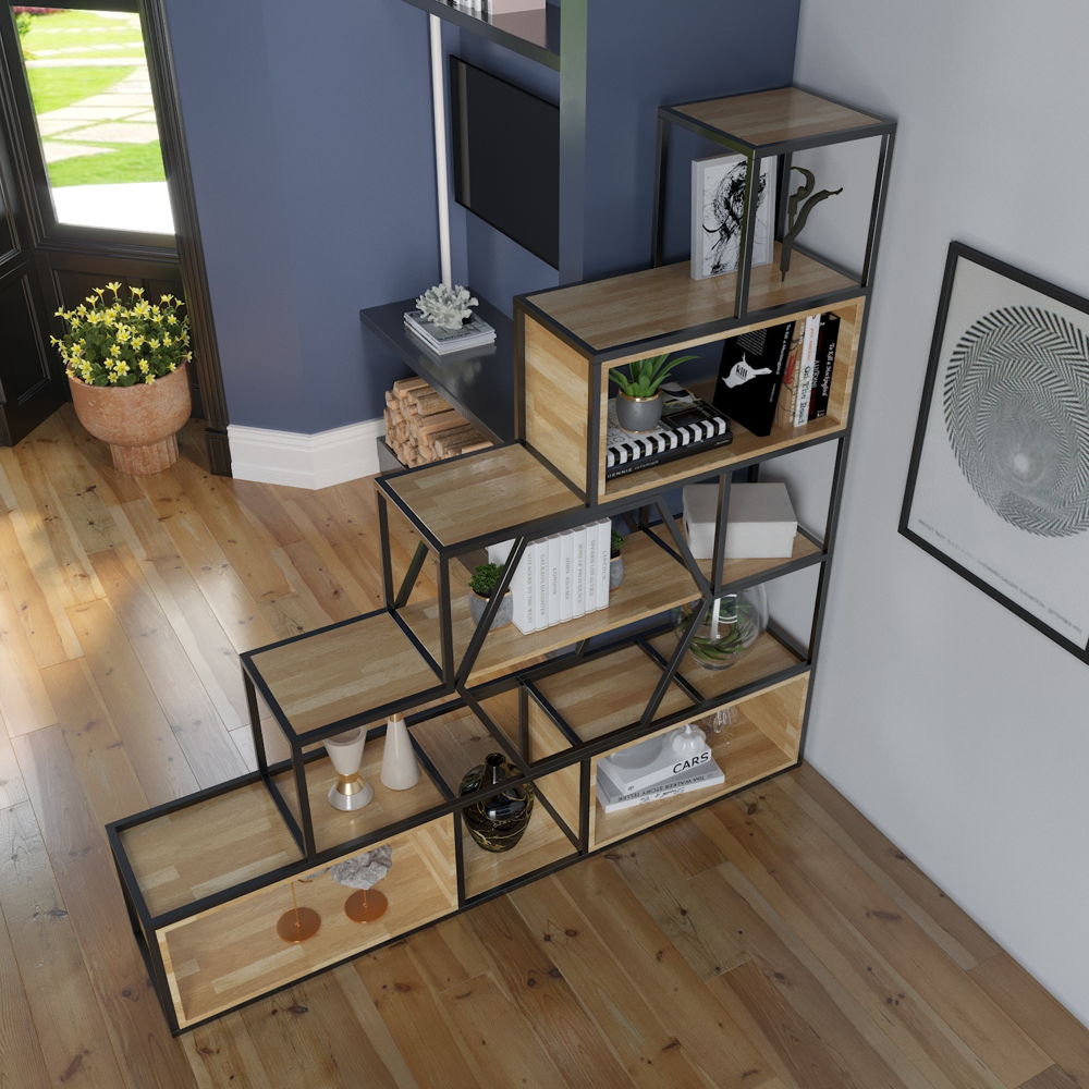 Kệ sắt trang trí KGS38 thiết kế dạng bậc thang hiện đại, phù hợp trưng bày decor phòng khách, showroom hoặc văn phòng. Sản phẩm do Nội thất Sinh Liên trực tiếp sản xuất, đảm bảo chất lượng và nhận đặt theo yêu cầu.