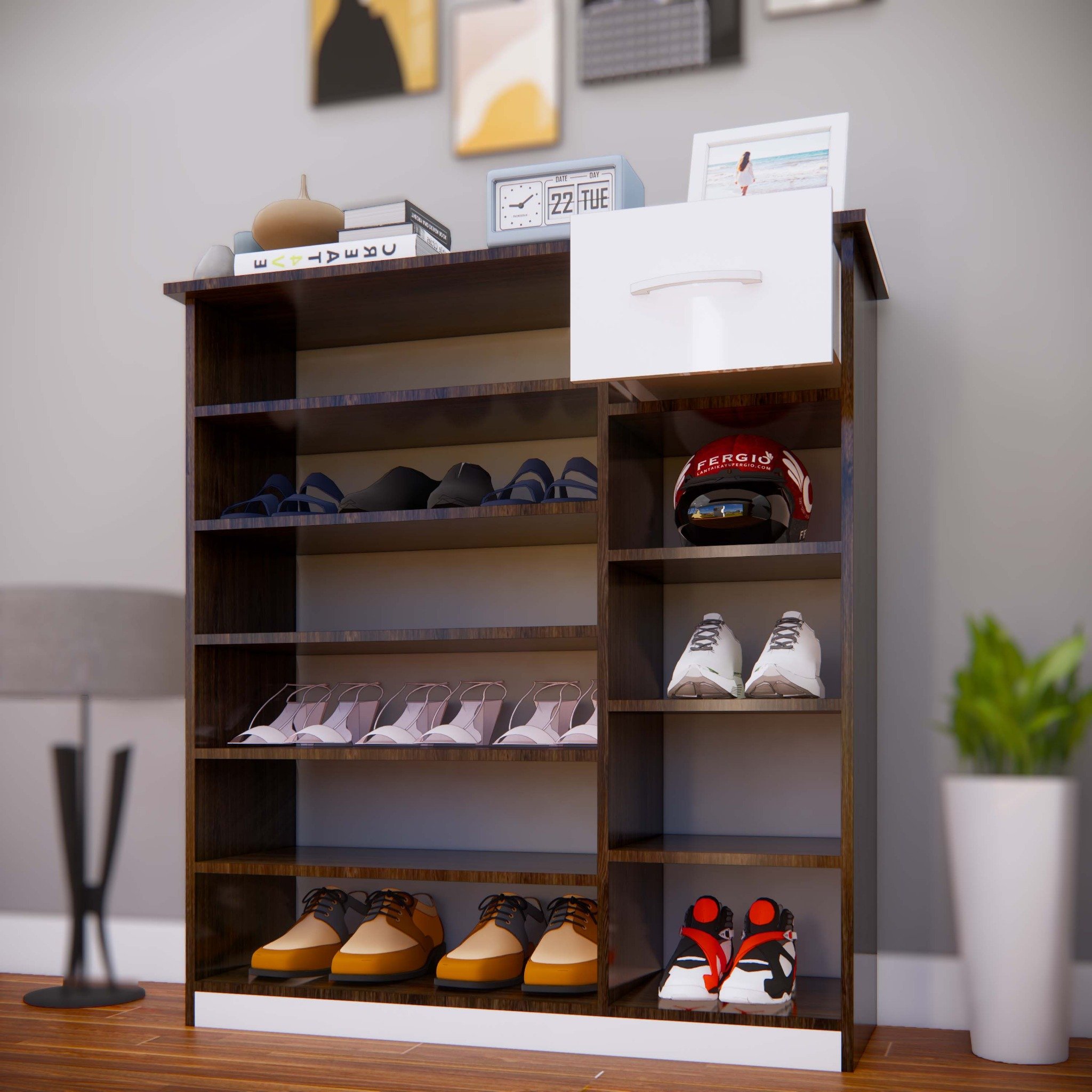 +01 khoang 1 cánh mở, bên trong có 2 đợt gỗ chia làm 3 ngăn để giày dép và tủ có 1 ngăn kéo để đồ.