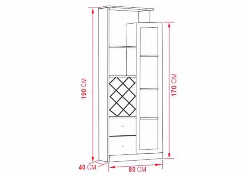 Kích thước: Rộng 80 x Sâu 40 x Cao 190 (cm)