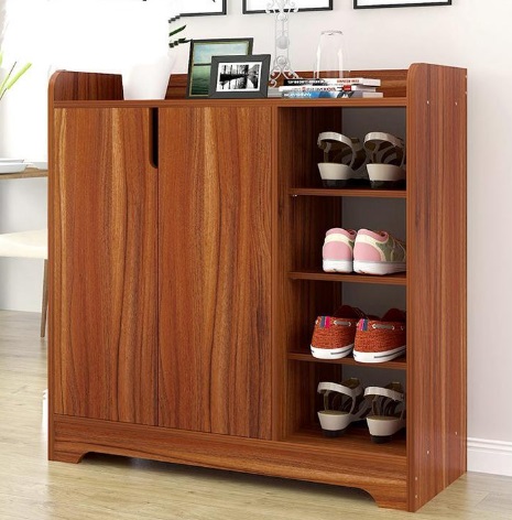 +01 khoang 2 cánh gỗ mở, bên trong có 03 đợt gỗ chia làm 4 ngăn ô để giày dép.