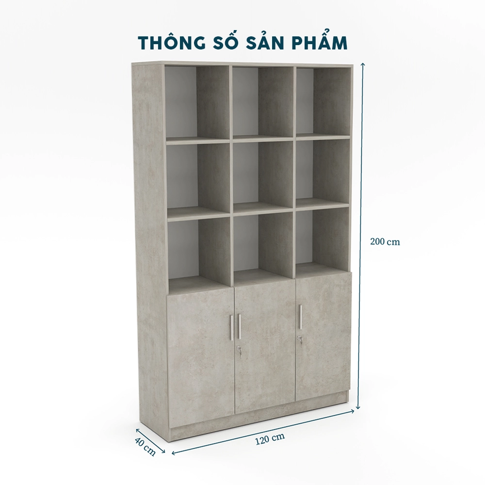 Tủ kệ gỗ để hồ sơ tài liệu văn phòng đẹp hiện đại TVP07 (120/160×40×200cm)