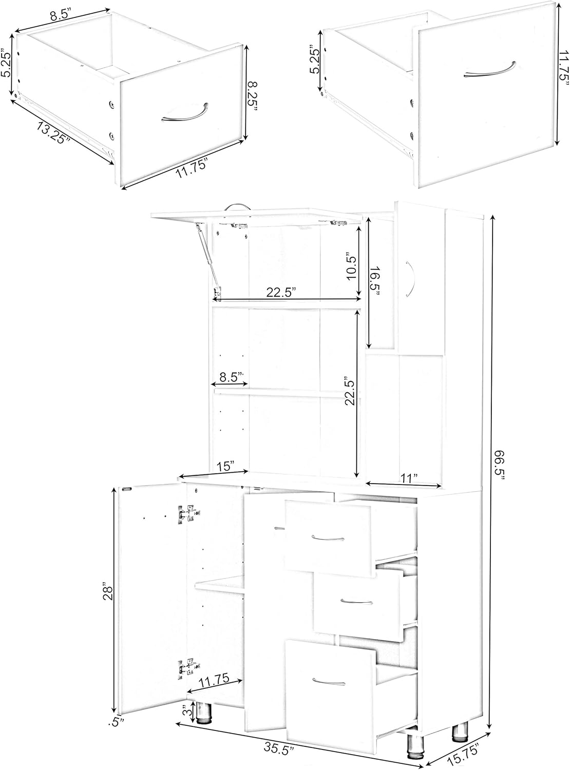 Tủ được thiết kế với 4 cánh mở, 3 ngăn kéo tiện lợi và nhiều đợt chia khoang để giúp bạn dễ dàng sắp xếp các đồ dùng gia dụng như lò vi sóng, lò nướng, nồi cơm điện, nồi chiên không dầu, xoong nồi, gia vị và các loại thực phẩm khô khác. Với thiết kế hiện đại và tinh tế, tủ kệ bếp này rất phù hợp để đặt trong phòng ăn hoặc nhà bếp, giúp không gian nấu nướng của bạn trở nên gọn gàng, sạch sẽ và đẹp mắt hơn bao giờ hết.